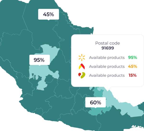 Track price variations and assortment availability at each retailer, by zone or zip code from which the consumer is browsing.
